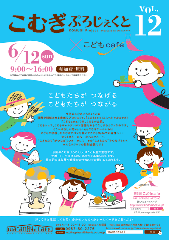 こむぎぷろじぇくとvol・12×こどもcafe!お知らせ。