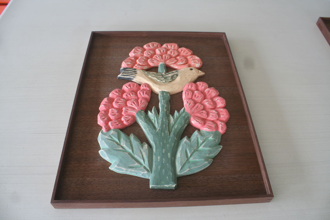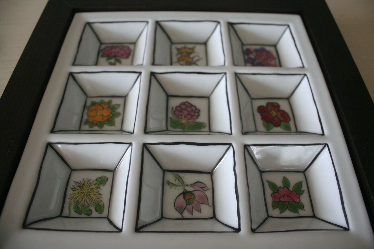 出身地韓国の文化を表現されていて、民話や植物などのモチーフを陶板に表現した作品なども。